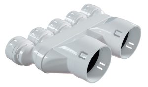 *Endkappen ermöglichen die Erstellung eines 3x50/1x75 Adapters für ein PE-FLEX® Ø75 mm Lüftungsrohr.