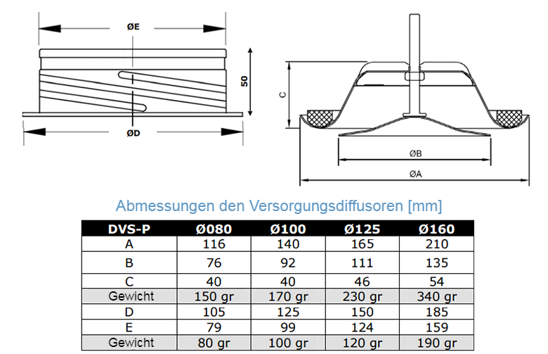 Hersteller - DEC International, Ursprungsland - Niederlande, verfügbare Größen: Ø80 mm, Ø100 mm, Ø125 mm und Ø160 mm.