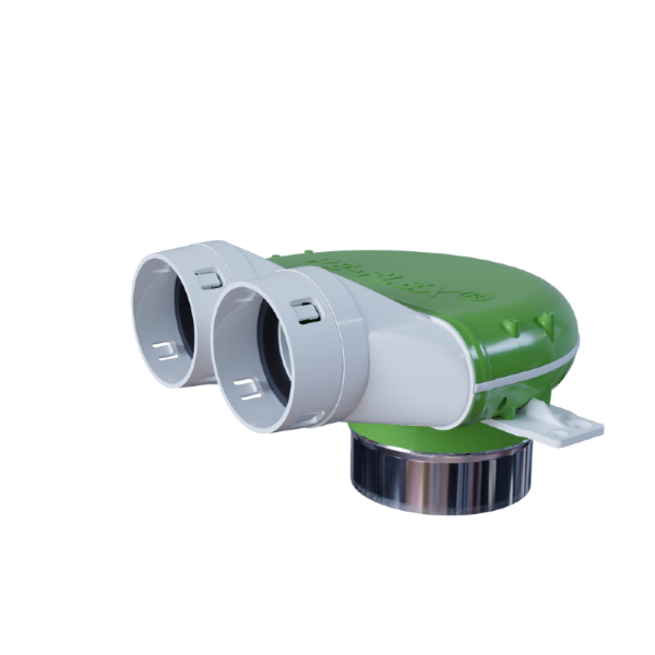 Beispielanwendung - 2xØ75/Ø125 Muffe Polycarbonatkasten mit Ø123 Nippel: